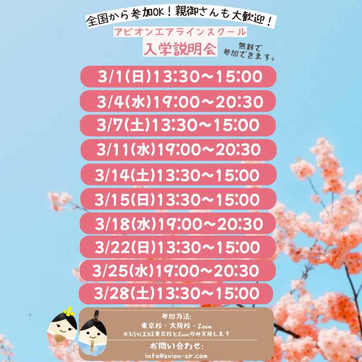 「全国から参加OK!スクール入学説明会」、「社会人のためのエアライン転職相談会」開催!🎉🎉🎉